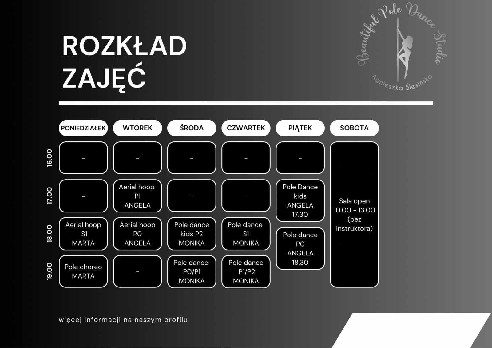 Zapraszamy do eksplorowania świata pole dance, niezależnie od wieku! Nasze zajęcia pole dance dla dorosłych to doskonała okazja do rzeźbienia ciała, poprawy kondycji oraz zwiększenia elastyczności. Instruktorzy z bogatym doświadczeniem zapewnią Ci wsparcie na każdym etapie nauki, nawet jeśli dopiero zaczynasz swoją przygodę z tańcem na rurze.